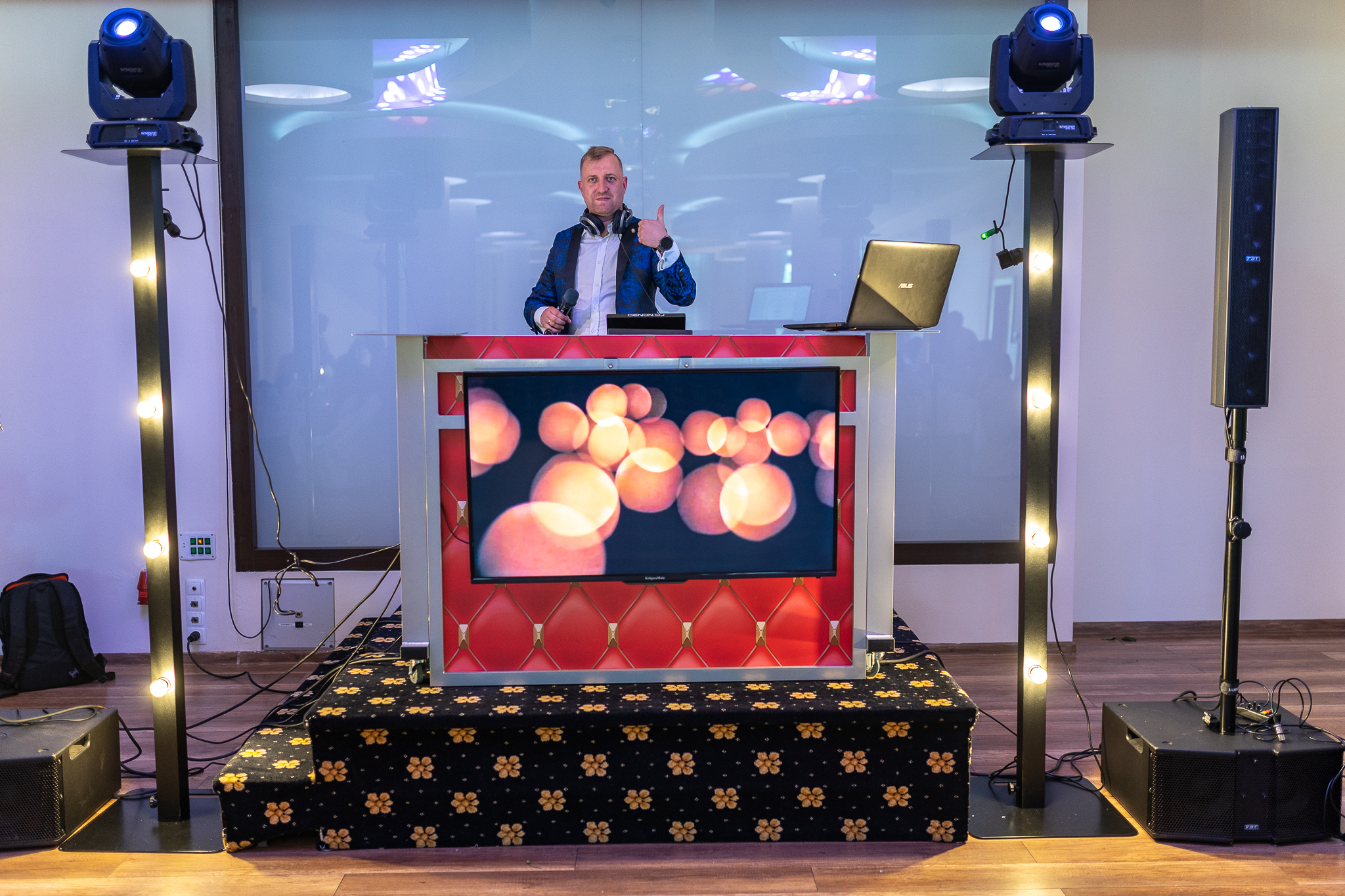 Najwyższej klasy brzmienie i efekty świetlne dostosowane do charakteru wydarzenia.Doświadczony konferansjer i DJ w jednym