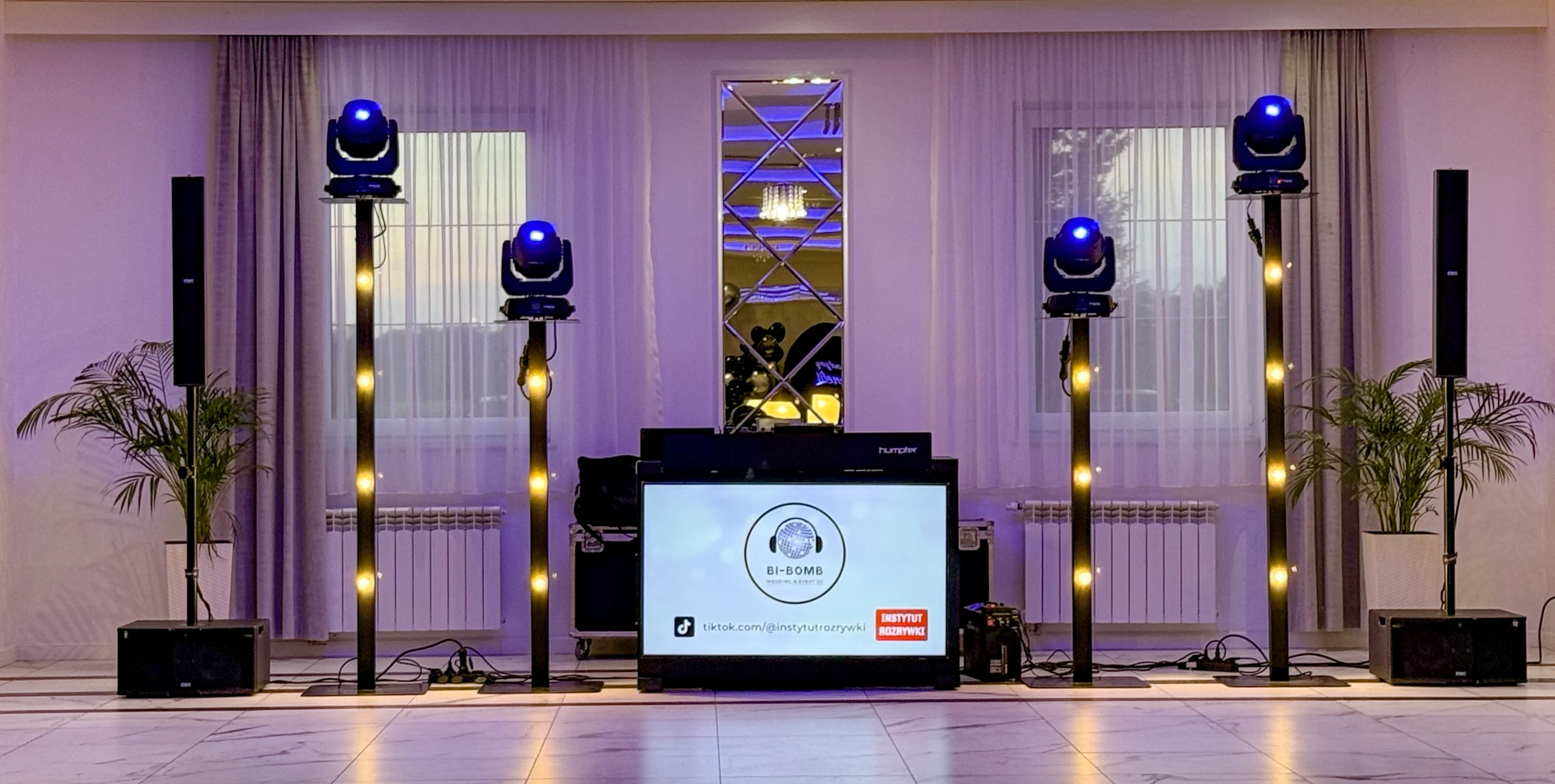 Odpowiedni klimat tworzy nie tylko muzyka, ale też wizualna oprawa wydarzenia. DJ Bi Bomb oferuje pełne wsparcie w tym zakresie: nowoczesne oświetlenie sceniczne, ciężki dym na pierwszy taniec, napisy LED, fotobudki, videobudki i wiele więcej. Dzięki temu każda impreza zyskuje unikalny charakter i efekt „wow”, który goście zapamiętają na długo. Więcej o atrakcjach ….
